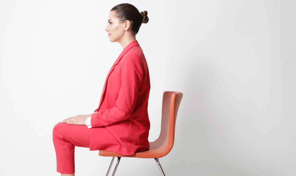 この状態においては、背筋が伸びて正しい姿勢が保たれています。
